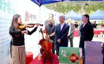 展销会现场,悠扬的乐声与热闹的展销氛围交织,高雅的音乐艺术与质朴的农产品巧妙融合,既展现了确山特色产品的魅力,也凸显了确山在乐器制造领域的工艺水平。此次活动中,艺术学院以音乐为媒,架起了校地文化交流的桥梁,展现了学院师生积极投身社会实践、服务社会的责任担当。