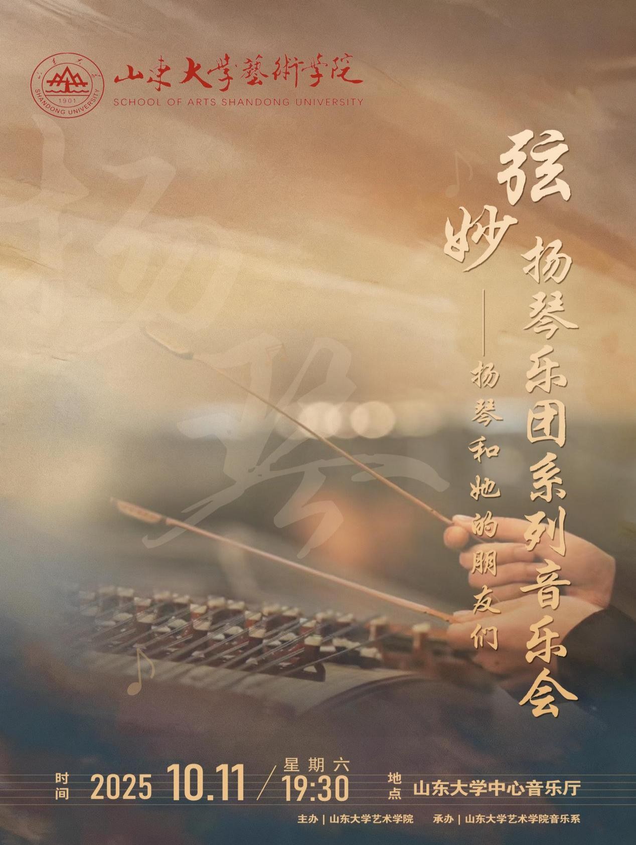 秋韵绵长,扬琴弦歌。弦妙扬琴乐团全体成员诚邀您于10月11日(周六)晚19:30,相聚山东大学中心校区音乐厅,共赴一场秋意与弦音交织的精彩盛会!