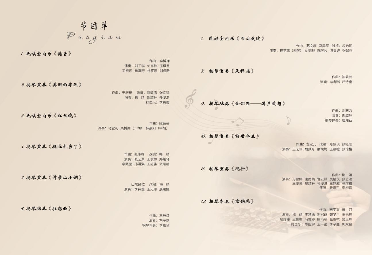 扬琴,作为扎根中华沃土的击弦乐器明珠,承载着历代乐人的匠心与智慧,在时代浪潮中不断突破传统边界,已然成为传递东方音韵的经典符号。伴随当代文化自信建设的深入推进,扬琴艺术正以更富活力的姿态,持续释放跨越时空的艺术魅力。