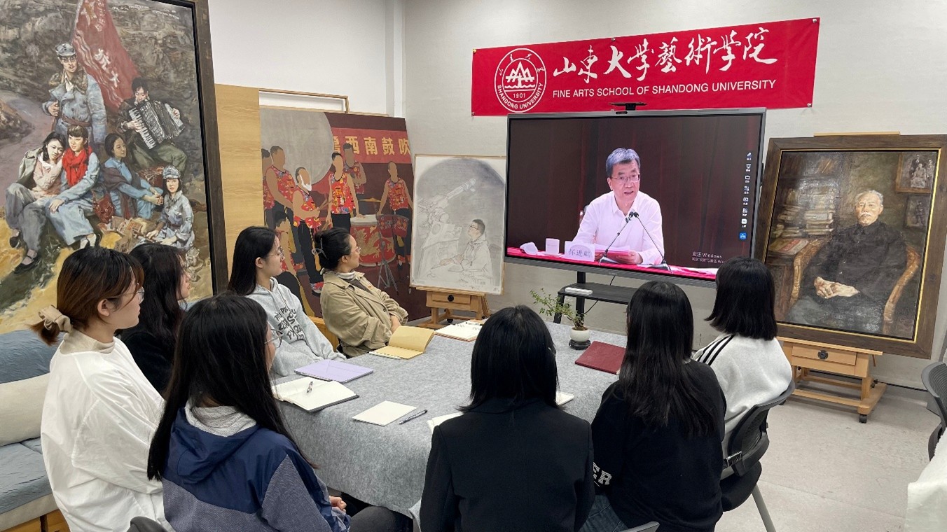 10月10日下午,艺术学院组织全体师生党员集中收看 2025 年下半年党员基本培训第一次集中大课。教育部党组书记、部长怀进鹏以《深入学习贯彻习近平总书记关于教育的重要论述,以教育强国支撑引领中国式现代化》为题作专题辅导报告。学院紧扣学科特性,以“学用结合、艺思相融”为核心,创新学习模式、深化学习实效,切实筑牢师生党员的思想根基、提升履职尽责的政治素养。