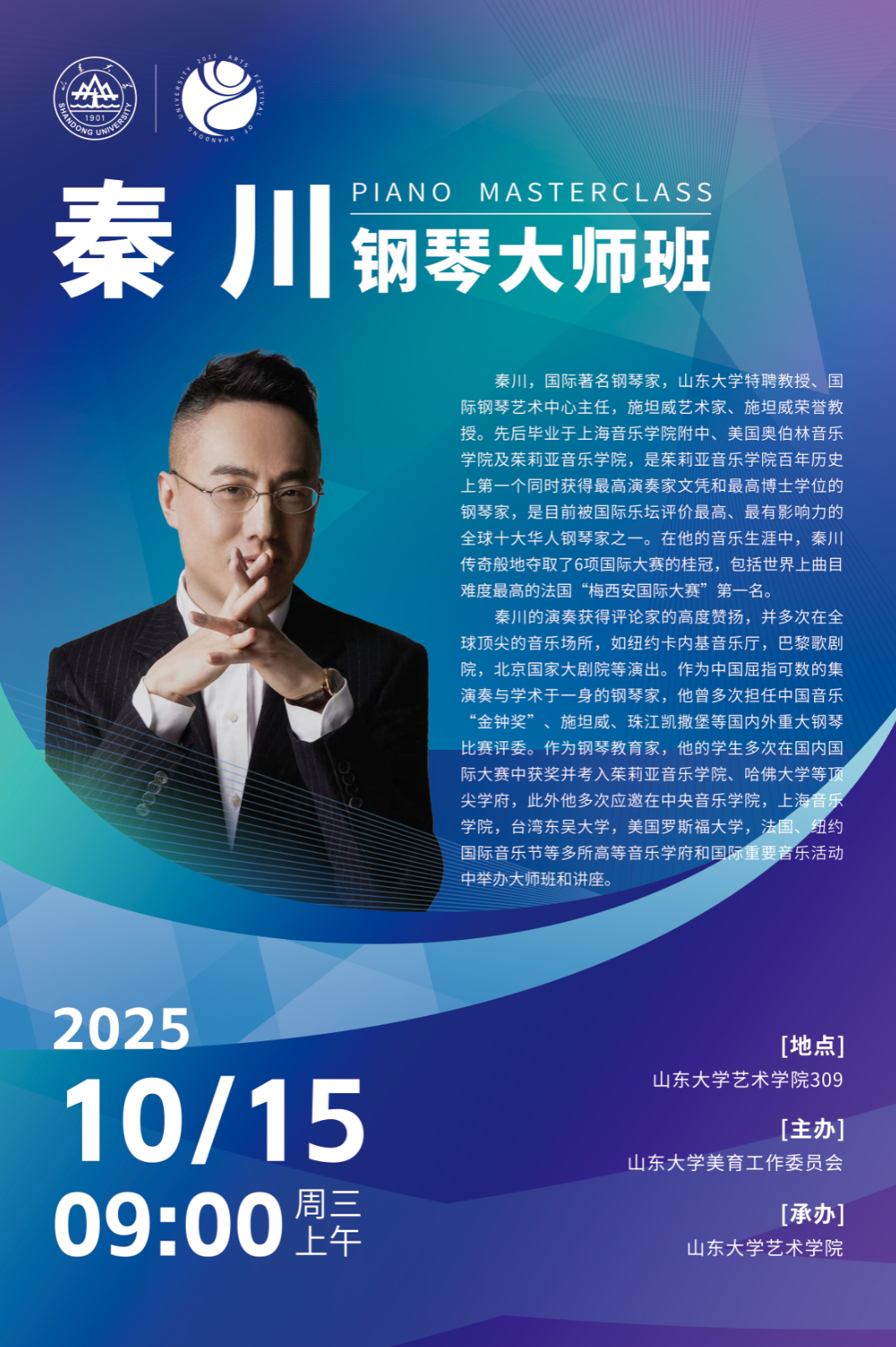 活动预告:2025山东大学艺术节-秦川钢琴大师班