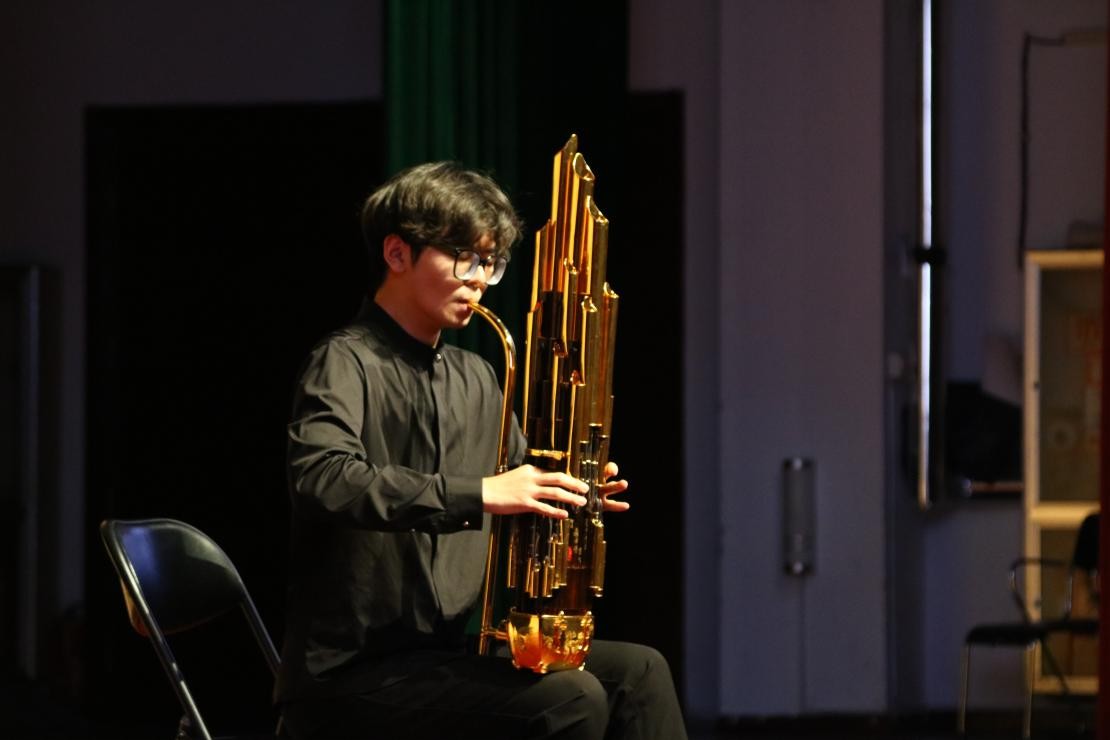 下半场,卢啸宇的打击乐独奏《冒险》大胆探索了小军鼓的丰富音色与演奏技法,充满现代气息与冒险精神。刘凡硕以李斯特的《西班牙狂想曲》征服了全场,华丽奔放的技巧将西班牙的热情与浪漫渲染得淋漓尽致。高远则用一首地道的陕北民歌《摇三摆》,生动刻画了黄土高原上青年男女淳朴真挚的爱情,其欢快的旋律令人印象深刻。
