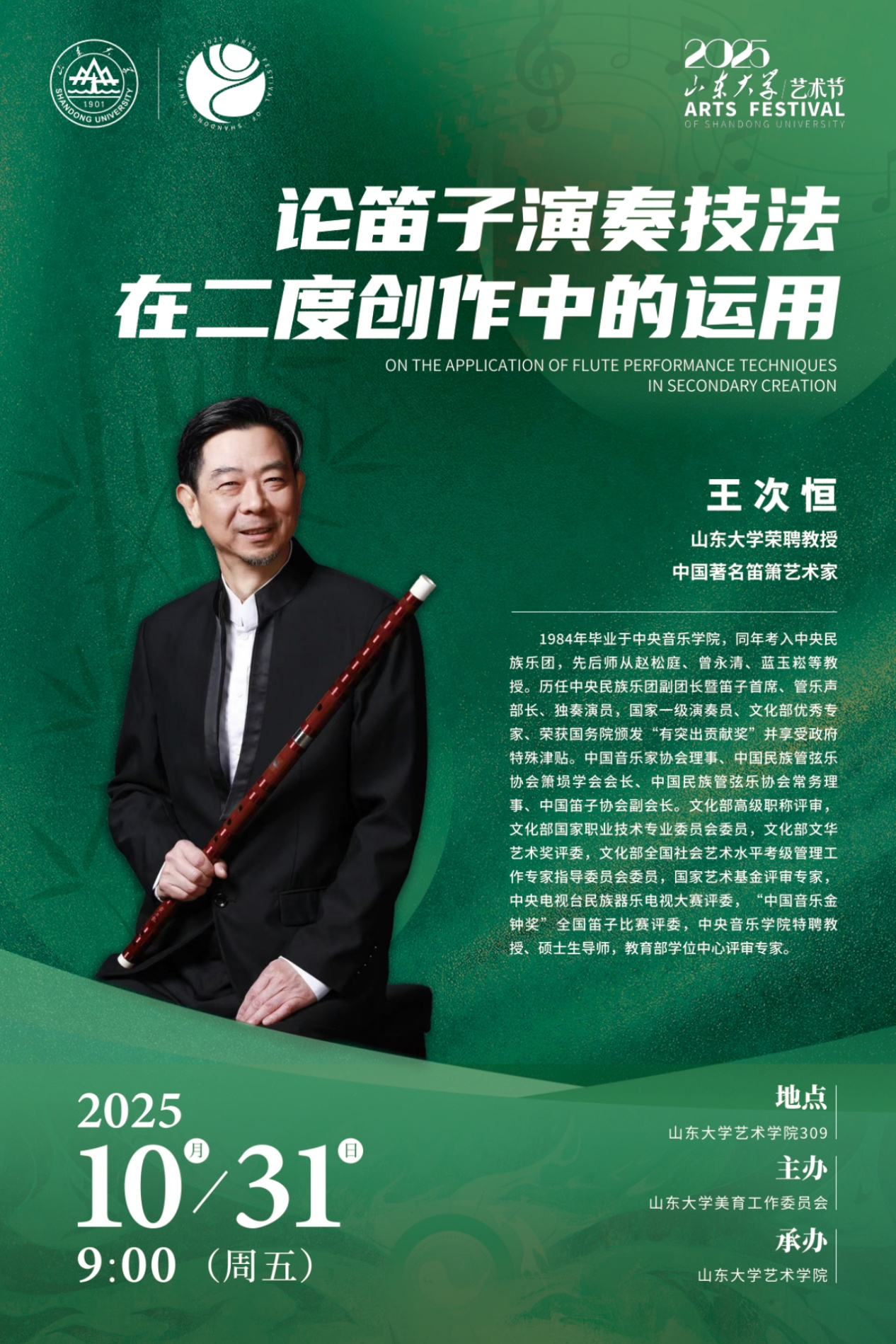 预告|王次恒竹笛大师班——《论笛子演奏技法在二度创作中的运用》