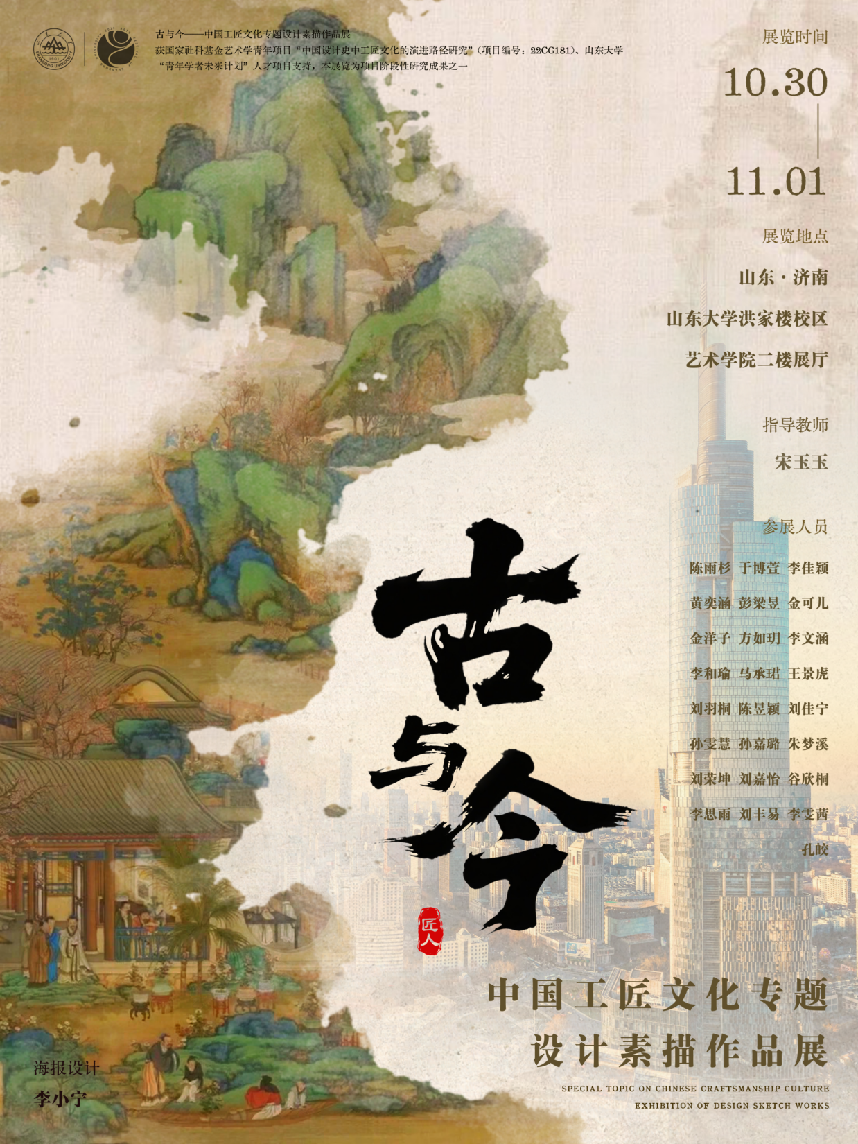 古魂承钧,今魄璨然。当千年工匠智慧与当代艺术语言碰撞,一场跨越时空的对话在素笺墨韵间徐徐展开。集25位参展者之巧思、携50幅作品。既承古之匠心,又融今之创想,在古今时空的经纬间,编织出一场工匠精神的绝美对话。观者且赏,古韵悠悠,心怀匠心雅意便能领略华夏古老工匠技艺与现代设计素描的艺术共鸣。展览以“古”为根基,深入探源传统非遗的精雕细琢,潜心细察古老技艺的巧夺天工,在虚实相生的笔触间重现传统工艺的魂魄;以“今”为镜鉴,将巨匠的精神气韵融入当代设计思维,在黑白灰的韵律节奏中,重构工匠文化的当代意象。展中作品亦追慕古意,以设计素描为媒介,用线条与明暗引观者触摸古代工匠文化的厚重底蕴,使“工匠精神”在古今的对话中跨越时空,绽放不朽之光华。请立于画外,以画框为窗,邀您细听一场“古与今”穿越千年的回响。“古与今—中国工匠文化专题设计素描作品展”获国家社科基金艺术学青年项目、山东大学“青年学者未来计划”项目学术支持。