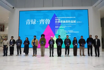 10月26日,先前由山东省文化和旅游厅、山东省油画学会主办的“青绿·齐鲁”——2025山东省油画作品展在威海天和美术馆开启了威海站巡展。山东大学艺术学院师生在此次展览中获得佳绩,教师郭笋的《高士图》、2025级美术与书法专业研究生李佳礼的《暖阳书径》(姚榕华指导)获得此展览最高奖项——“山东油画奖”。