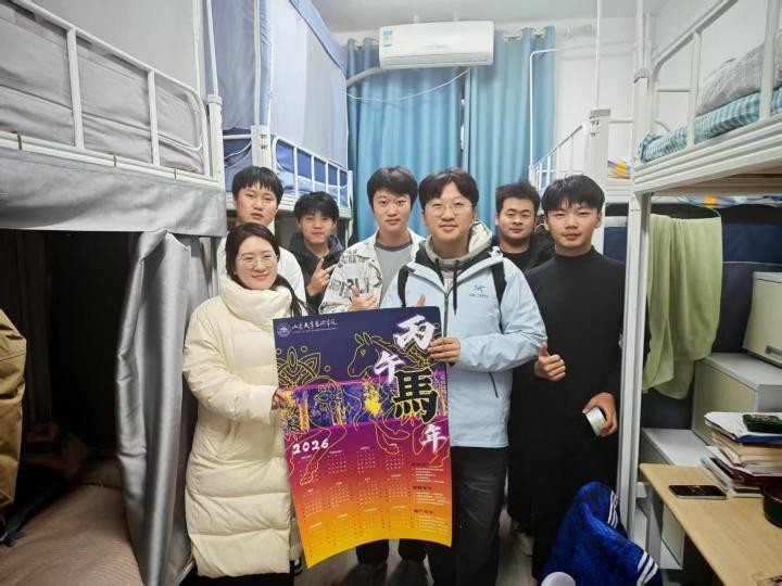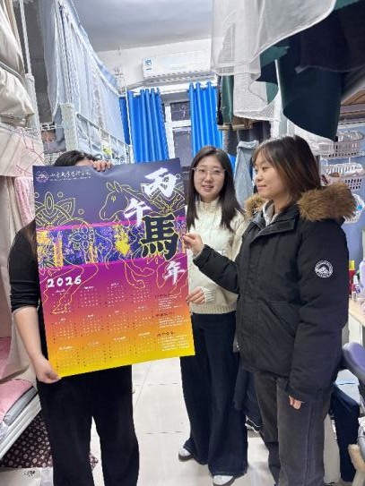 活动期间,学院师生走访各学生宿舍,张贴由学院学生会精心设计的《艺院学子2026年马年安全主题年历》,为宿舍增添文化氛围,同时也时刻提醒同学们要高度注意宿舍安全。此次活动将艺术创作与传统文化滋养融入社区空间,是把育人力量下沉社区、贴近学生的具体行动,也是学院深化“一站式”学生社区综合管理模式建设的生动实践。