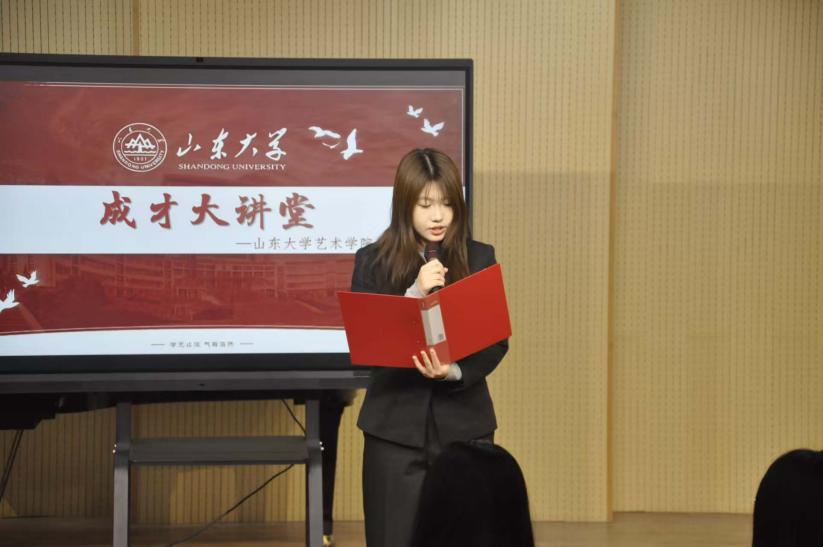 为深入贯彻落实党的二十届四中全会精神,纪念中国人民抗日战争暨世界反法西斯战争胜利80周年,不断完善“学在山大,快乐成长”特色育人体系,11月24日,艺术学院组织开展“立报国强国大志向,做挺膺担当奋斗者”成才大讲堂活动。艺术学院团委书记、辅导员赵根根老师,辅导员孙雅茹老师担任教师评委,艺术学院学生会、研究生会学生代表担任学生评委,共三十余名学生参加活动。