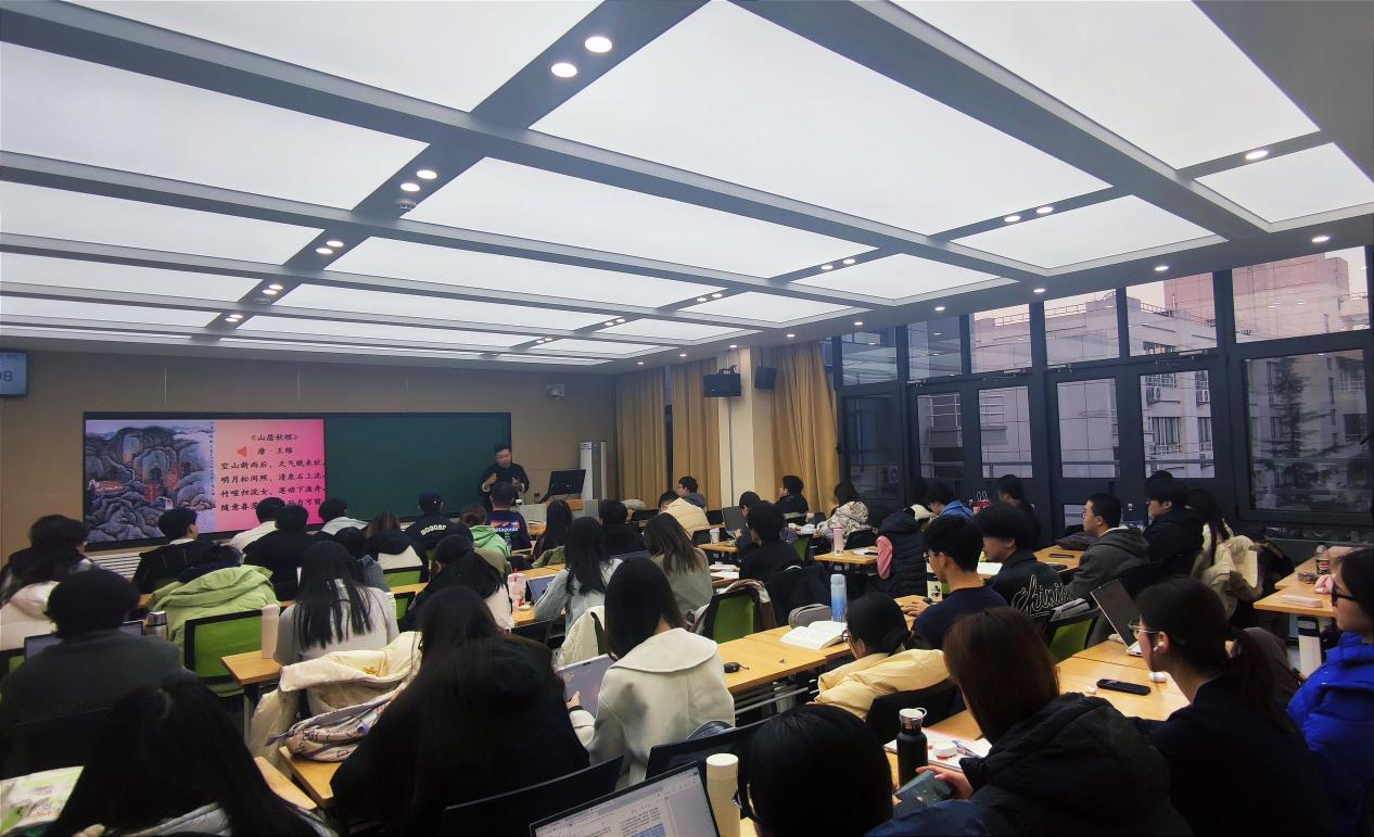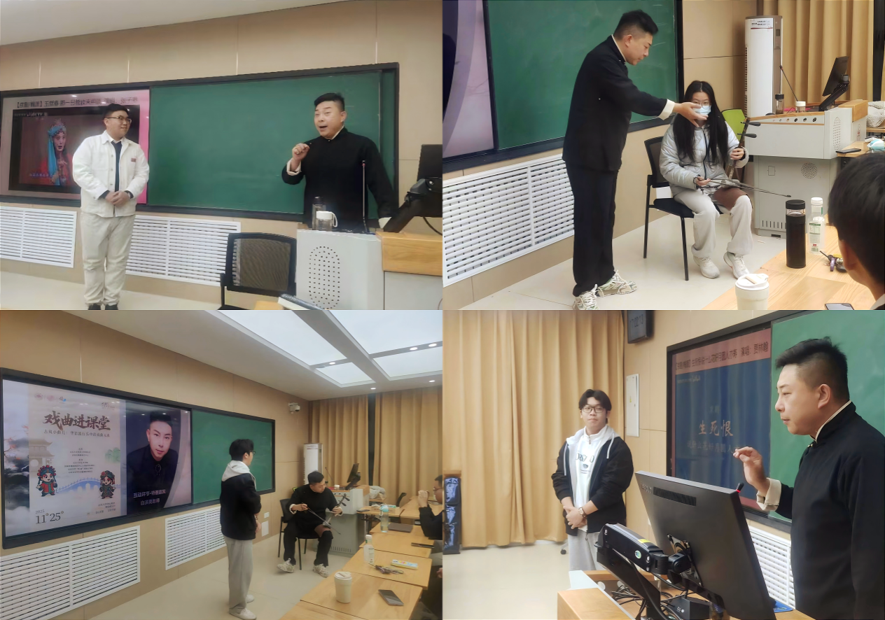在艺术互动环节,白洪亮老师首先以清雅流动的昆曲唱腔演绎了唐诗《山居秋暝》,赢得现场阵阵掌声。随后在校生贾林翰与张子恩分别演唱了京剧名段《生死恨·说什么花好月圆人亦寿》《玉堂春·那一日梳妆来照镜》。白老师结合作品背景、唱腔及舞台呈现进行了现场指导,使同学们在即时反馈中获得了更直观的学习体验与进步,活动在实践与讨论中进一步挖掘展示了青年学子对戏曲艺术的兴趣与表演潜力。