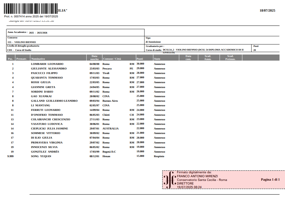 山东大学艺术学院学子高炫楷凭借扎实的专业功底与出色的音乐素养,成功被意大利罗马音乐学院(Conservatorio di Musica “Santa Cecilia” di Roma)录取,已于2025年11月起攻读该校两年制小提琴硕士课程,成为这所意大利顶尖音乐学府的新生力量。