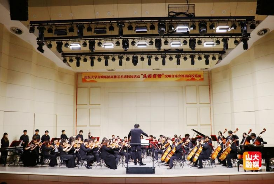 10月30日至11月1日,“初心——山东大学民族乐团专场音乐会”在中心校区音乐厅、趵突泉校区梦迪音乐厅、保利山东省会大剧院依次上演,音乐会让民族音乐成为联通古今中外的文化桥梁,赋能中华优秀传统文化创新传播,助力文化“两创”奏响时代新声。11月8日至9日,山东大学交响乐团赴河南省,分别在河南科技学院与河南师范大学奏响《为国育贤》专场交响音乐会。作为教育部、文化和旅游部、财政部“2025高雅艺术进校园”活动的一部分,此次巡演紧扣“立德树人,美育启智”的宗旨,在呈现高雅音乐会之余,更将艺术体验延伸至舞台之外。乐团在两校同步开设了“玩转戏剧”工作坊、艺术沙龙及戏剧体验课,让河南学子在亲身参与和创造中,真切感受艺术的魅力与感染力。此次活动成功搭建了省际高校美育交流的桥梁,也成为山东大学将艺术节育人成果与社会服务、文化传播相结合的成功例证。