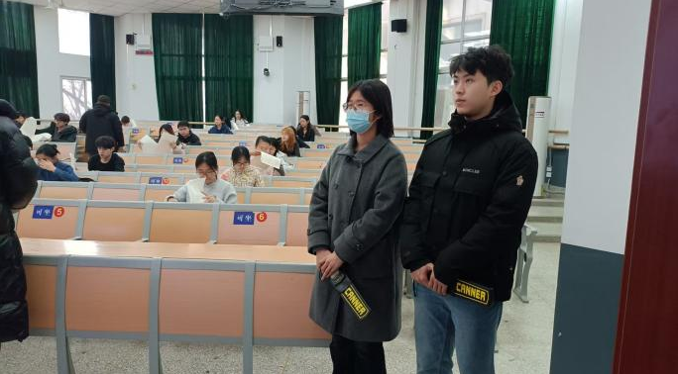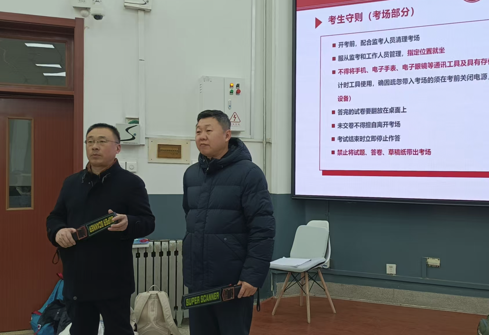 学院同时注重技术防范与人文关怀相结合:严格执行入场安检流程,规范使用金属探测仪等设备;考场内循环播放考试纪律提示,强化诚信应考氛围;设置场外支援小组,及时响应突发情况。通过“规范执纪、技术防范、制度保障”相结合的方式,构建起全方位、立体化的考试安全屏障,切实保障了考试全过程的严肃性与公正性。
