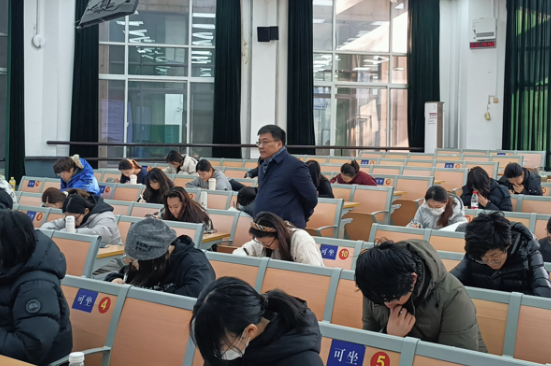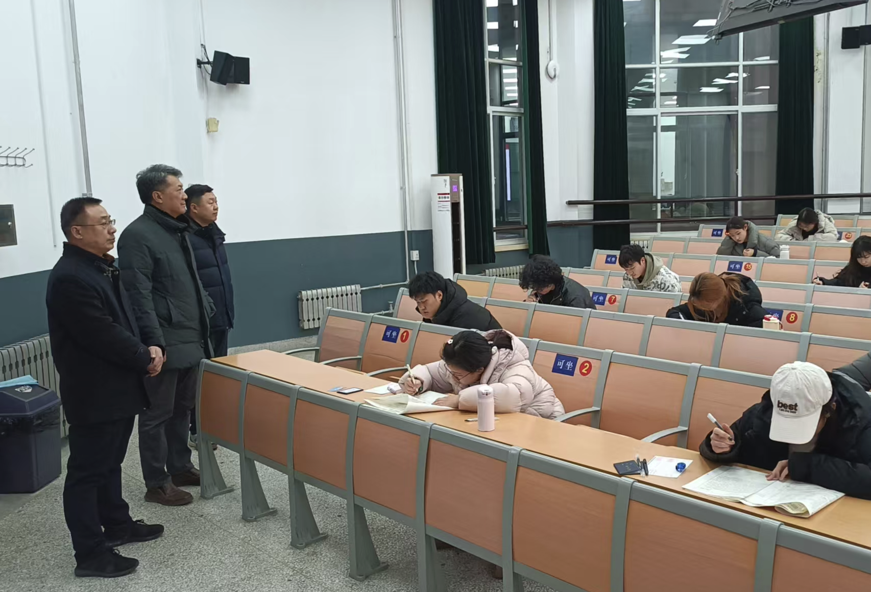 为确保考试规范有序,学院建立了多级协同、全面覆盖的巡考监考机制。院长安宁、党委副书记朱伟、李勇、副院长姚榕华、王文灏、孔南、院长助理张爱红、刘迎新和辅导员逄清源、孙雅茹、教务员吴建群共同组成巡查工作组,提前到岗检查考场环境布置,并在考试期间对各考场进行多轮次、全覆盖巡视检查,实时掌握考场动态。学院全体监考教师严格遵守考务规范,认真履行监考职责。从考生入场身份核验、证件检查,到考试过程中的全程监督、试卷收发管理,每位教师都坚持标准统一、程序规范、执纪严格,以实际行动维护考场秩序和考试公平。