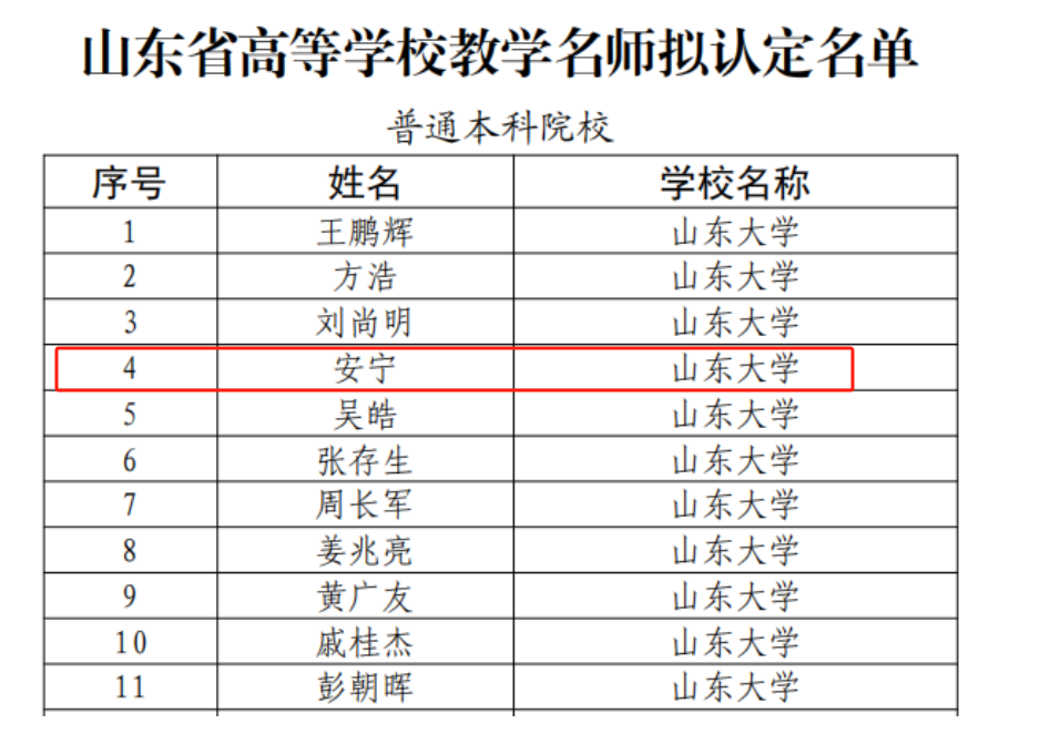 近日,山东省教育厅正式公布2025年山东省高等学校教学名师名单。经个人申报、单位推荐、学校资格审核及校外专家评审,艺术学院安宁教授成功当选。据悉,本次评选竞争激烈,全校仅有11位教师获此殊荣。
