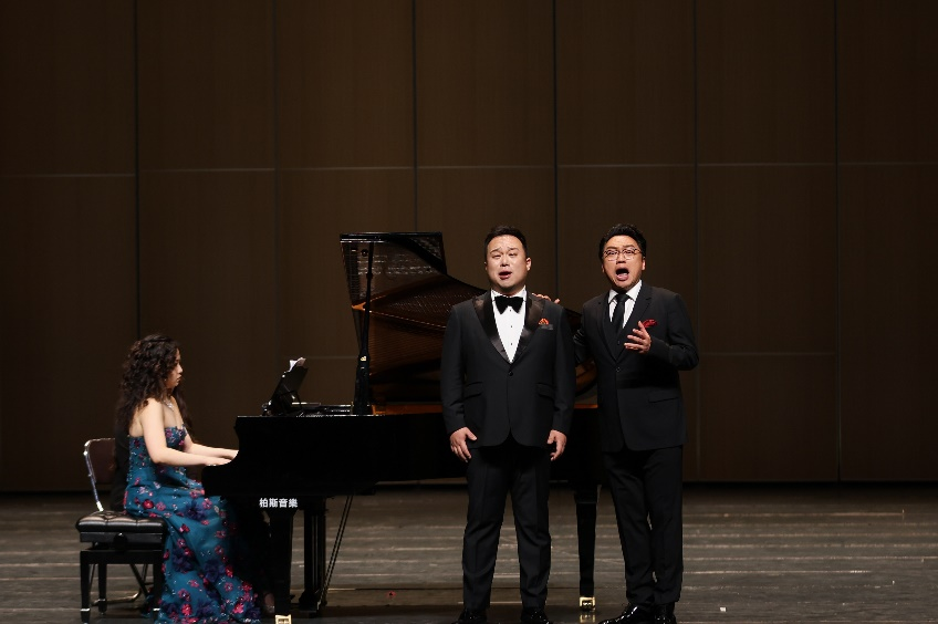 音乐会终曲为比才歌剧《采珠人》的二重唱,李毅与李鳌以声部交错的和声演绎友谊主题,钢琴如乐队般烘托氛围。