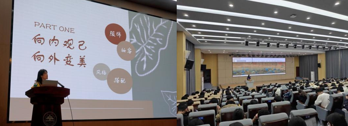 “察颜悦色·向内观己·向外变美”系列讲座则从审美心理与形象美学两个层面展开,一方面引导学生向内审视自我,理解审美体验与情绪、性格之间的关系,提升审美自觉;另一方面结合色彩、风格与形象塑造,引导学生发现自身与生俱来的审美优势,在尊重个体差异的基础上提升整体审美素养与自信表达能力。