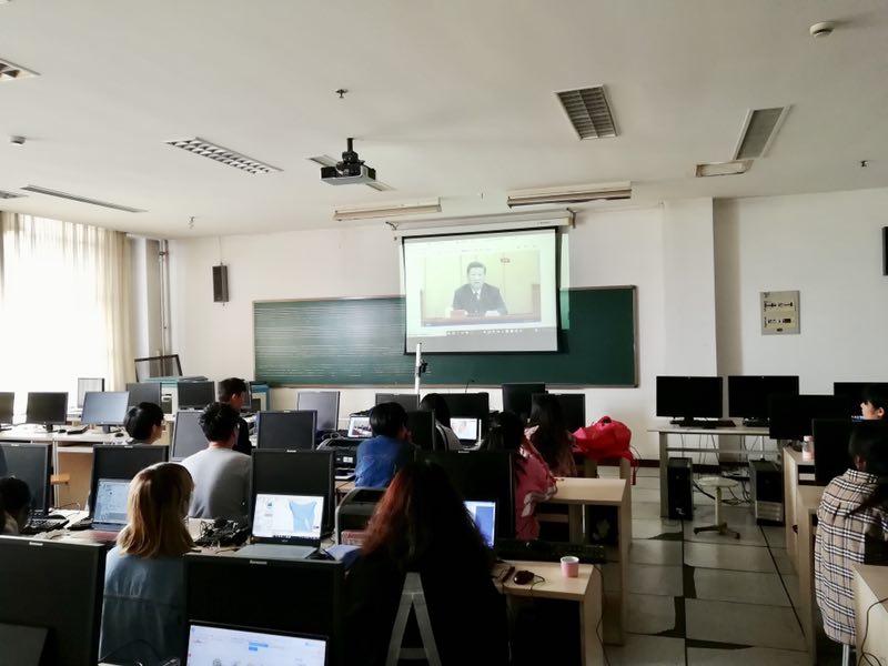 2019年4月30日上午10时30分,艺术学院辅导员老师赵根根、潘国涛以及学生代表齐聚学院会议室,共同观看纪念五四运动100周年大会直播。艺术学院党委书记李晓峰、副书记姜楠出席本次活动。在此同时,学院各班级同学在各教室一同观看大会。