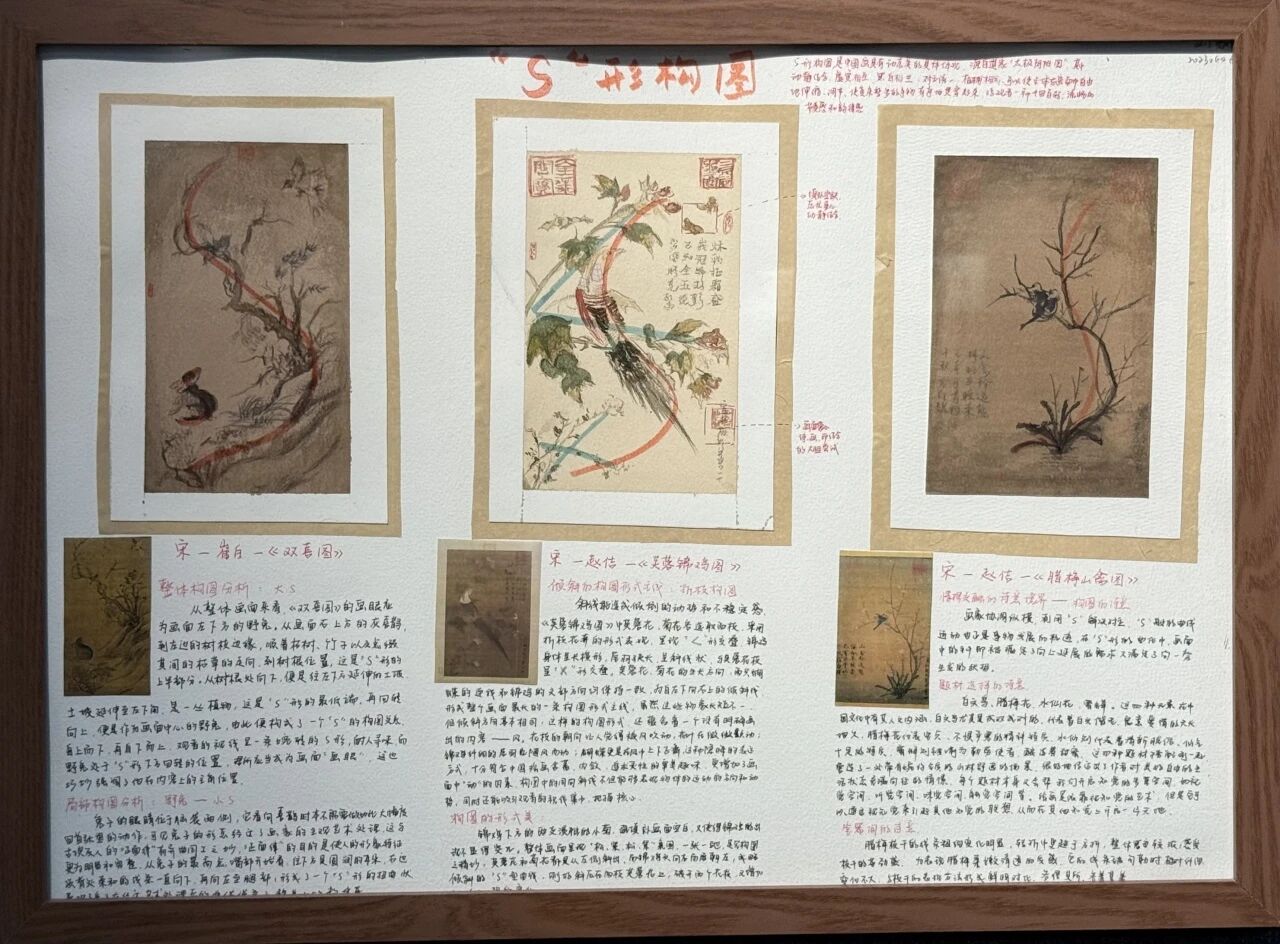 11月4日,“经营位置——23级中国画专业构图课程展”在艺术学院二楼展厅开幕。艺术学院党委副书记朱伟、副院长姚榕华、院长助理张爱红、美术系主任邢小震、国画教研室主任董梅、团委书记赵根根、办公室主任张擎等学院领导与老师出席开幕式并莅临观展。本次展览集中呈现了2023级中国画专业同学在中国画构图课程中的学习实践成果,分为“古代绘画经典构图分析”与“融入当代意趣的创作简图”两部分,旨在展现“经营位置”在中国画教学与艺术实践中的独特价值。本次展览是山东大学艺术节的重要活动之一。
