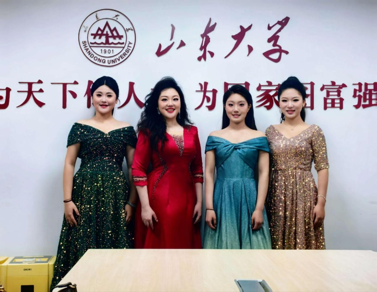 艺术学院师生受山东省妇联和山东大学工会、妇委会邀请参与活动演出,由艺术学院声乐教研室主任范雅婷副教授带领2024级研究生王家懿、南依朋及2022级本科生杨舒雅,共同在仪式中献唱歌曲《花开中国》,以艺术表达致敬新时代女性,展现巾帼风采。