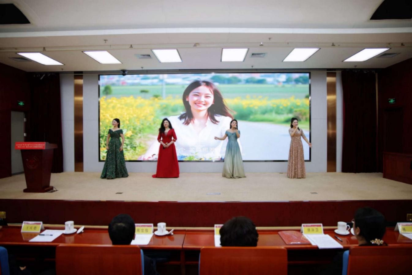 在前期准备中,范雅婷老师带领三位同学反复排练、细致走台,以饱满热情打磨每一个细节、雕琢每一处表达。在仪式尾声,伴随着《花开中国》的旋律响起,师生四人以清亮圆润的嗓音和真挚的情感,唱出了对女性力量的赞美与对时代发展的信心,赢得了在场嘉宾的热烈掌声,将活动现场氛围推向高潮。