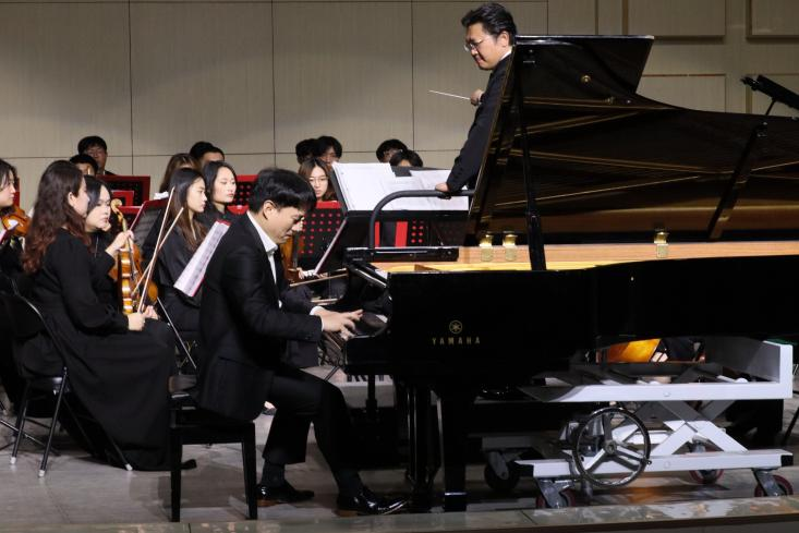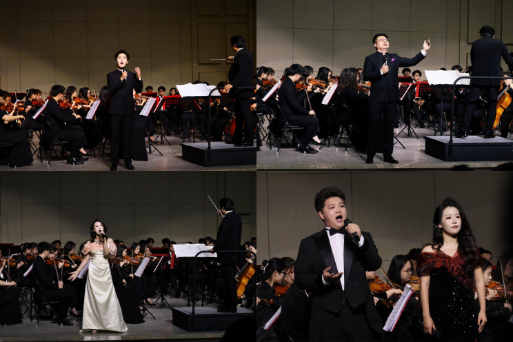 音乐会由艺术学院教师孔南任指挥,青年教师徐驰,外籍教师文奉俊,学生徐艺丹、刘一敏、高远等精彩献艺。音乐会精心设计了两个主题。第一主题为“时代华章·育贤使命”,乐团为两校师生演绎了山东大学原创声乐套曲《为国育贤》。作品以“为天下储人才,为国家图富强”为核心立意,生动展现山东大学120年来与民族共命运、与时代同奋进的奋斗历程;以音乐为载体,用恢宏的乐章深刻诠释了百廿学府为国育贤的初心与担当。作品宏大的叙事结构与细腻的情感表达相得益彰,旋律时而激昂澎湃,时而深情隽永,引领听众穿越历史长廊,感受教育事业的崇高与伟大。第二主题为“黄河精神·民族颂歌”,乐团奏响了《第一交响序曲》和钢琴协奏曲《黄河》的壮丽乐章,在乐团师生的默契配合下,再现了黄河的磅礴气势与中华民族不屈不挠的奋斗精神,激昂的琴声与恢弘的管弦交相辉映,将音乐会推向高潮。在现场观众的强烈欢呼下,乐团为观众加演了《钢铁洪流进行曲》《太阳出来喜洋洋》和《我的祖国》三首作品。