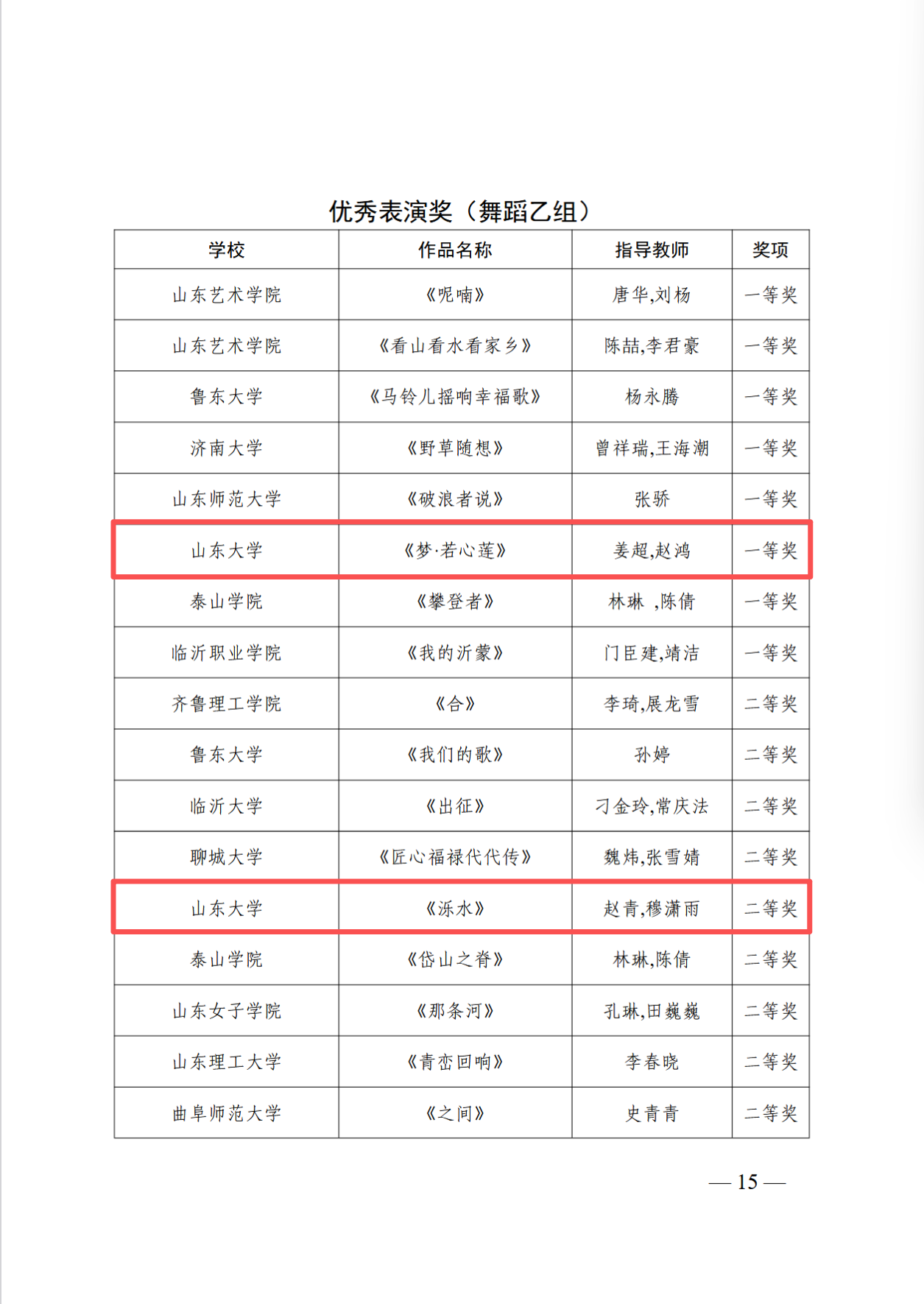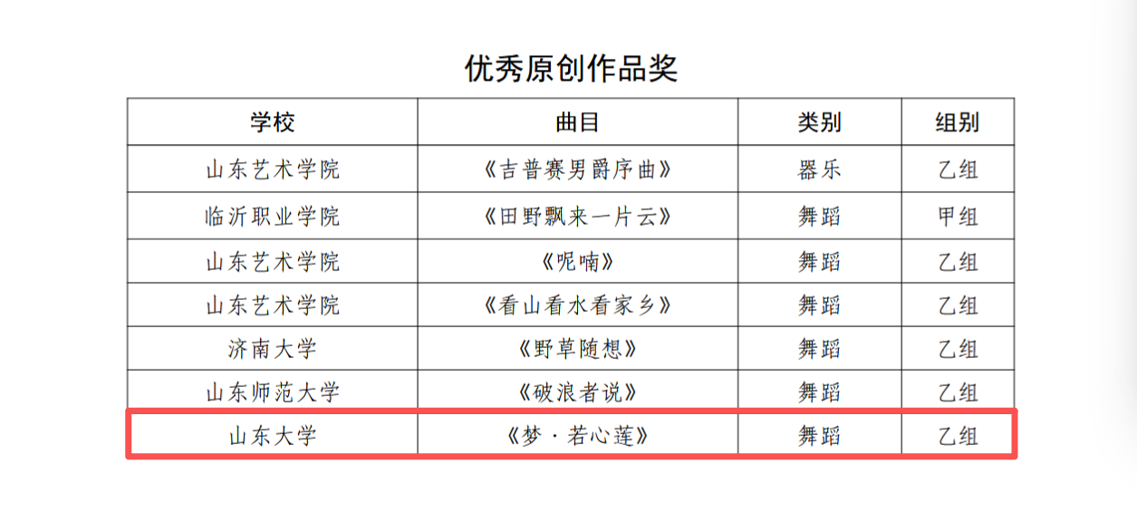 山东大学在山东省大学生校园艺术节器乐舞蹈专项展示中取得佳绩