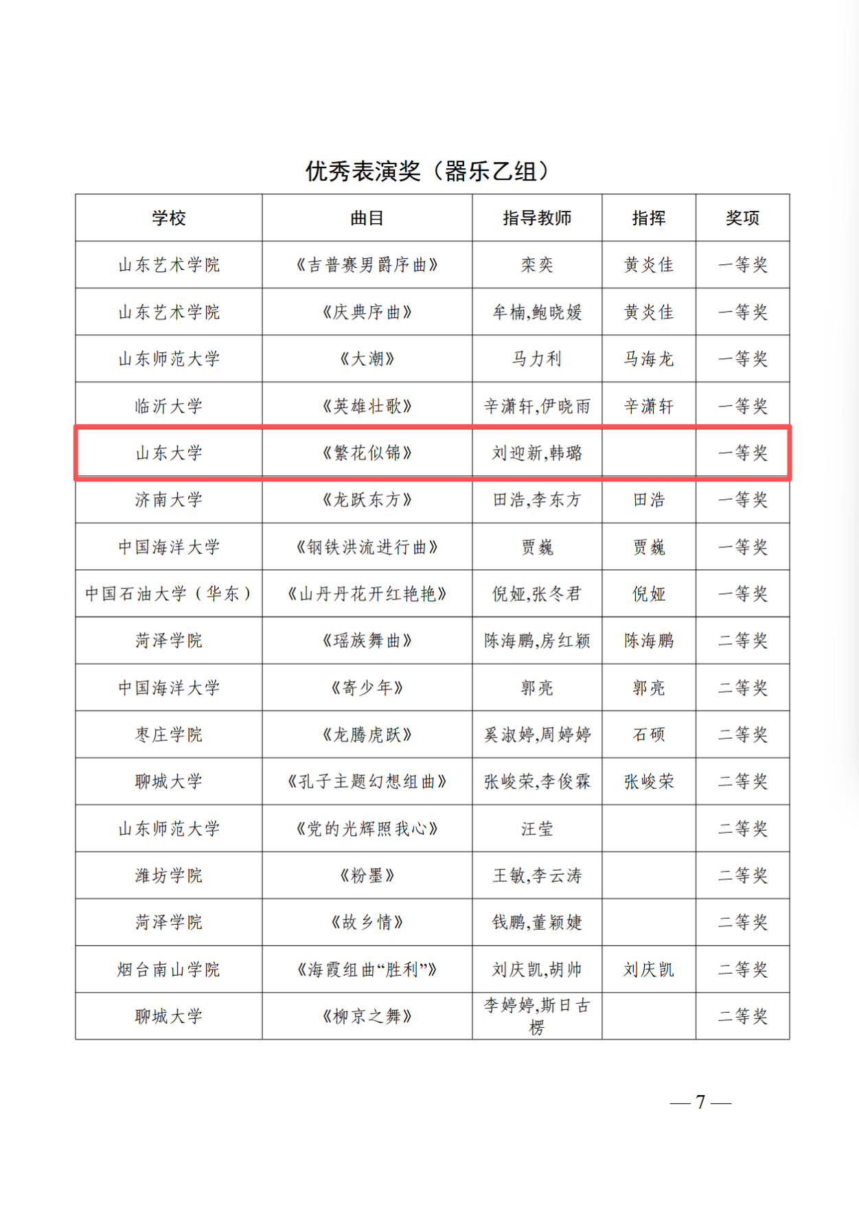 此次展演中取得的多项荣誉,是山东大学长期以来深耕美育教学实践的丰硕成果。学校始终坚持“培根铸魂、立德树人”的育人理念,将艺术教育融入学校人才培养全过程,通过搭建高水平实践平台、强化师资建设、鼓励原创作品创作等方式提升学生艺术素养与创新精神。此次展演既为师生提供了竞技交流的宝贵机会,更充分展现了学校美育教学实践成效与学子青春风采。未来,学校将秉持“守正创新、教学相长”的理念,持续深耕艺术教育教学,鼓励师生投身美育教学实践,为学校美育事业发展与文化传承创新贡献更大力量。