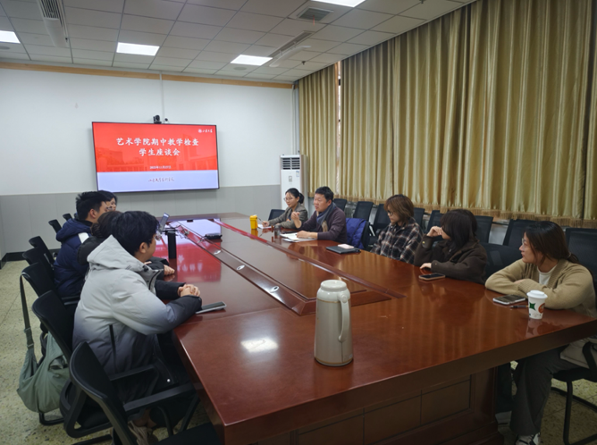 为全面审视学院本科教学运行状况,切实推动人才自主培养质量提升与教育教学高质量发展,依据学校《关于开展2025-2026学年第一学期期中教学检查的通知》精神,艺术学院近期组织开展系统化、多维度的本科期中教学检查工作。11月27日,学院召开师生代表座谈会,广泛听取意见建议;11月24日至27日,学院陆续组织开展四次公开课教学检查活动。