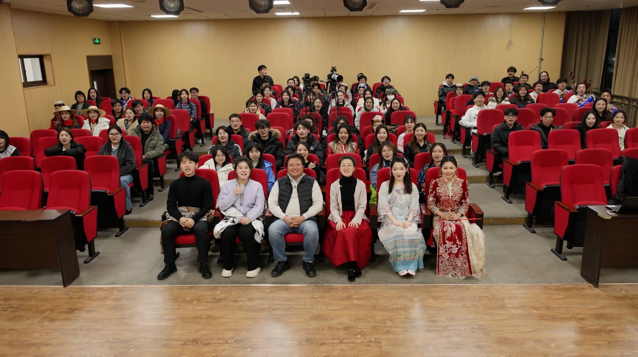 12月23日晚,“乐润山河——《民族音乐概论》课程思政实践音乐会”在艺术学院309教室举办。2023级音乐班全体同学以讲演结合的形式,创新演绎《龙船调》《弥渡山歌》《军民大生产》等十余首经典作品,将课堂理论转化为舞台实践,以艺术之美传递思政育人之魂。