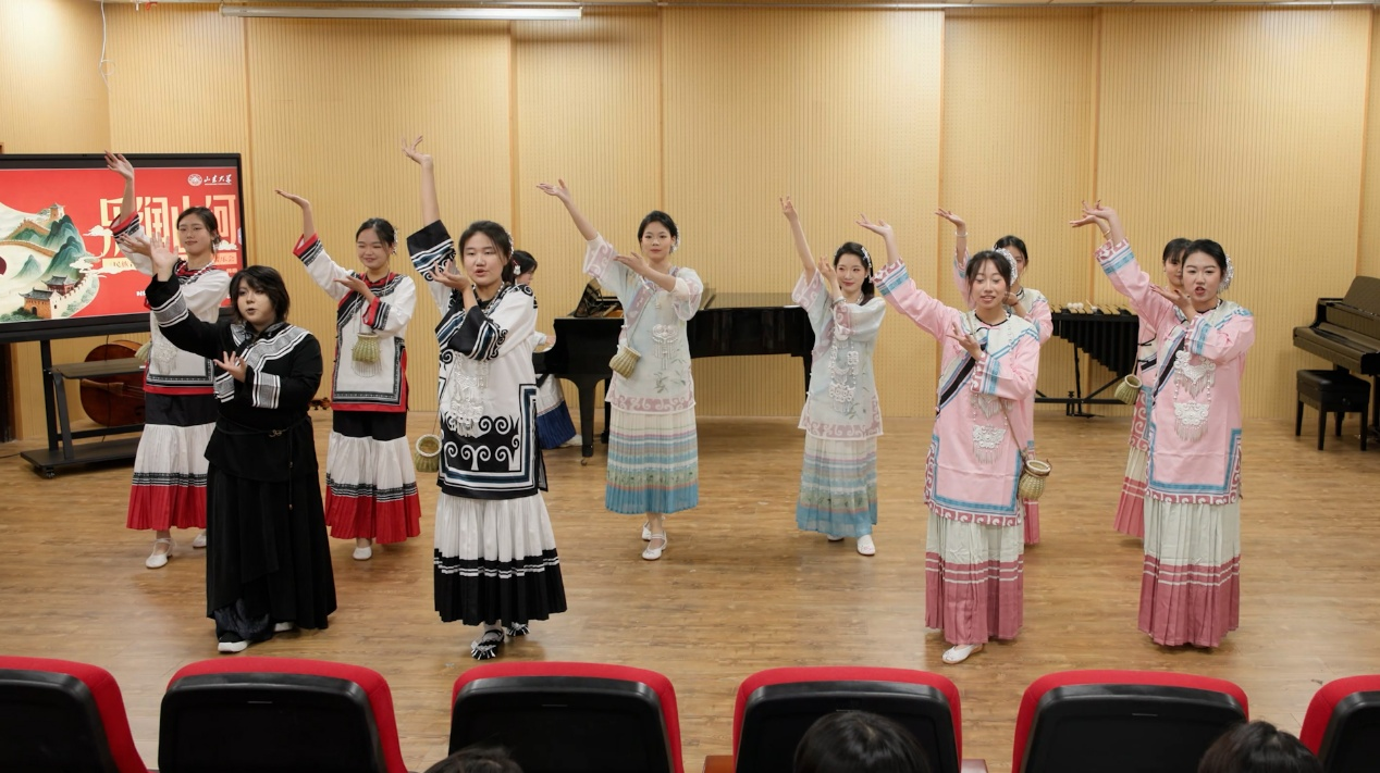 “乐润山河”音乐会不仅是《民族音乐概论》课程的教学成果展示,更是山东大学艺术学院近年来深化课程思政建设的创新实践。通过“讲演结合”的形式有机融合思政教育与专业教学,让学生从“被动听训”转向“主动求索”。当思政内容通过艺术载体“有知有味”地呈现,当聚光灯照亮青年心中的文化自信,思政教育便不再是悬浮的概念,而成为“可观、可感、可创”的生命体验。未来,山东大学艺术学院将继续打造“有温度的思政课”,构筑“艺术+思政”育人新范式。