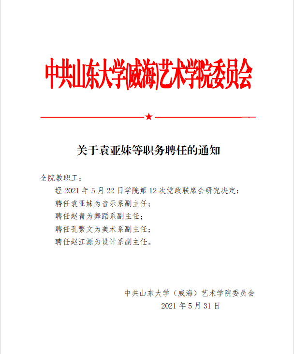关于袁亚妹等职务聘任的通知