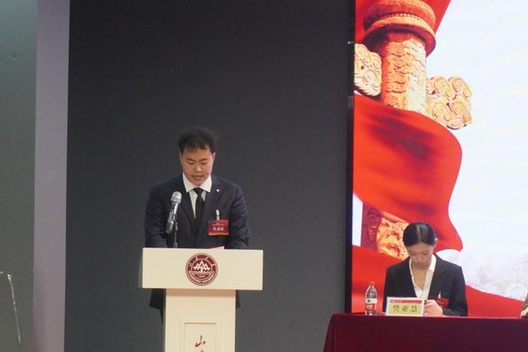 艺术学院第二十届研究生会主席杨新奇作《山东大学艺术学院第二十届研究生会工作报告》,围绕搭建研究生艺术创作交流平台、组织学术沙龙与毕业作品巡展、对接科研资源助力课题推进等展开汇报。同时,报告也明确指出当前工作中活动品牌化建设有待加强等不足,并提出未来将着力加强跨院系艺术合作、打造特色研学项目的发展计划。报告已提请大会审议。