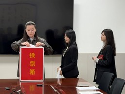 在艺术学院104会议室同步召开的第二十一次研究生代表大会正式会议上,研究生辅导员、团委书记赵根根老师主持会议。全体研究生代表在赵根根老师的主持下,审议并通过了《山东大学艺术学院第二十一次研究生代表大会监票人和计票人名单》。随后,第二十届研究生会主席杨新奇,向大会通报了第二十一届主席团候选人民主评议结果。