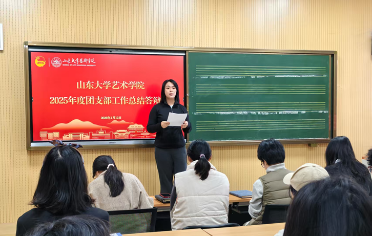 1月12日,艺术学院举行2025年度团支部工作总结答辩会。艺术学院团委书记赵根根老师,辅导员逄清源、孙雅茹老师,艺术学院吴建群老师与全体团支书共同参加。会议由院团委副书记孙敏涵主持,各班团支书依次进行述职答辩。